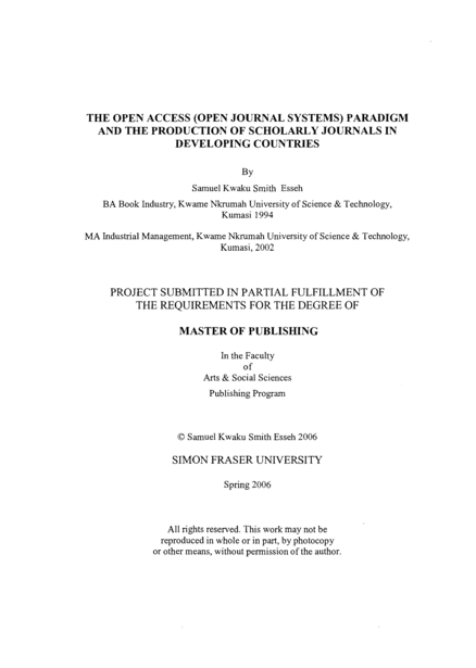 The Open Access (open Journal Systems) Paradigm and the Production of Scholarly Journals in Developing Countries