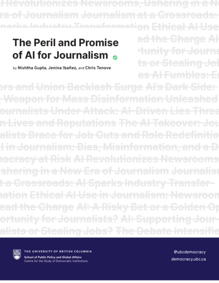 "This report draws on insights from the workshop, along with recent academic and journalistic publishing. It highlights three major issues: How generative AI can make disinformation campaigns faster, more targeted, and more persuasive. How newsrooms’ adoption of AI tools can lead to inaccuracies and other risks. How AI may threaten the viability of professional journalism, including through automation and content generation that replaces human journalists. In response, journalists are developing investigative practices to expose disinformation campaigns, experimenting with AI tools to make their own work more efficient, and developing ethical guidelines and labour protections to defend professional journalism. Likewise, the news industry, policymakers, and platforms are considering responses that range from workforce training to newsroom innovation to new professional guidelines to AI regulation. Through this report, CSDI hopes to contribute to important public conversations about the impact of new technologies on journalism and our information environments. Ultimately, the responses developed by journalists, policymakers, technologists, and citizens will shape our efforts to understand the world and act as democratic citizens." (Abstract)