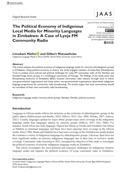 The Political Economy of Indigenous Local Media for Minority Languages in Zimbabwe: A Case of Lyeja FM Community Radio
