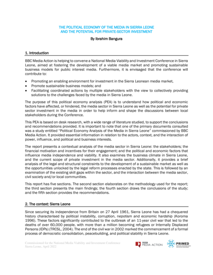 The Political Economy of the Media in Sierra Leone and the Potential for Private-Sector Investment
