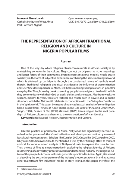 The Representation of African Traditional Religion and Culture in Nigeria Popular Films