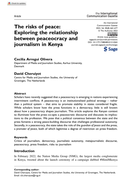 The risks of peace: Exploring the relationship between peaceocracy and journalism in Kenya