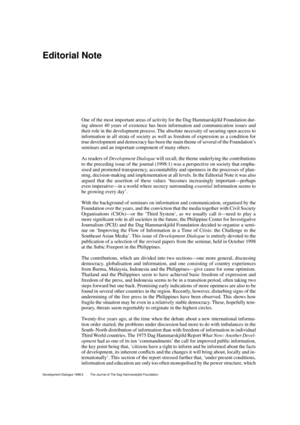 Development Dialogue (Dag Hammarskjöld Foundation), issue 2 (1998), pp. 3-119