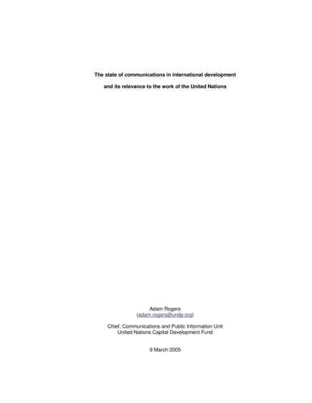 The State of Communications in International Development and its Relevance to the Work of the United Nations