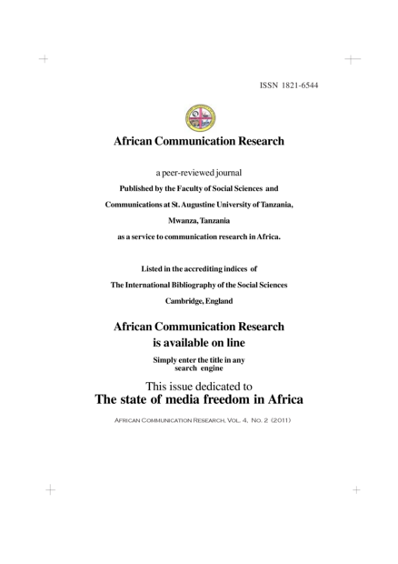 African Communication Research (St. Augustine University Mwanza), volume 4, issue 2 (2011), pp. 221-388