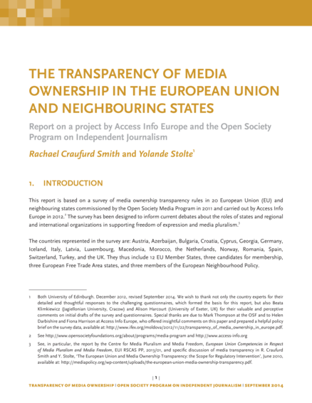The Transparency of Media Ownership in the European Union and Neighbouring States
