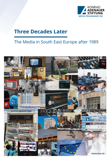 "The book depicts and reflects the media change by concentrating on five main topics: the development of the media market, the relationship between media and politics, the establishment of public broadcasters, the status of the journalistic profession and the role of digitalisation and the internet. The publication provides a chronological background and outlines the characteristics of the media landscape in each of the ten countries monitored by the KAS Media Programme: Albania, Bosnia and Herzegovina, Bulgaria, Croatia, Kosovo, North Macedonia, Montenegro, Republic of Moldova, Romania and Serbia. Furthermore, the authors - media experts from the respective countries - address the following key questions, considering the fact that some countries have already joined the European Union: What is the state of the media today? What is their contribution to democracy, how viable are they, what has been achieved? - Important questions for all media experts in the region, but also for everyone who is interested in the media change in South East Europe. “The result is a broad historical overview that impressively documents how differentiated and how fast the change has taken place. It is closely linked to the social transformation process as a whole, which has not yet been completed in any of the countries”, says Hendrik Sittig, Head of the Media Programme South East Europe of the Konrad-Adenauer-Stiftung. "Moreover, it must unfortunately be said that the hope that accession to the European Union would be accompanied by rapid alignment with the other EU countries has not been fulfilled." (https://www.kas.de)