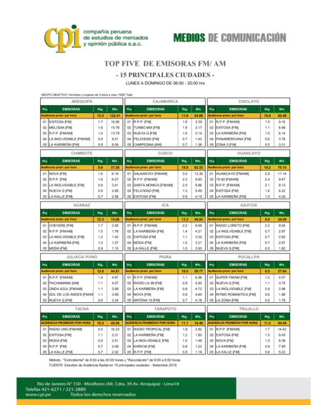 Top Five de emisoras FM/AM: 15 principales ciudades