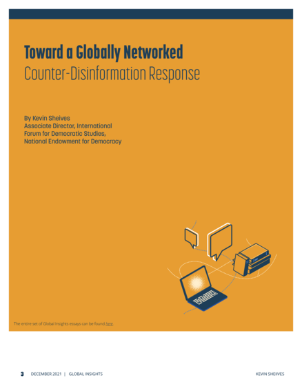 "A loosely connected, constantly learning global network of counter-disinformation responders—with the benefit of greater access to platforms and additional resources from funders—can serve as a bulwark against evolving threats to the integrity of the information space. Although these threats travel across borders rapidly, civil society organizations countering them can respond by learning from one another’s innovations, successes, and failures. New innovations in the field include media development in closed messaging platforms like WhatsApp, addressing offline sources of disinformation, empowering investigative journalism to hunt down disinformation networks, and better equipping under-threat organizations in illiberal and authoritarian settings." (Page 4)