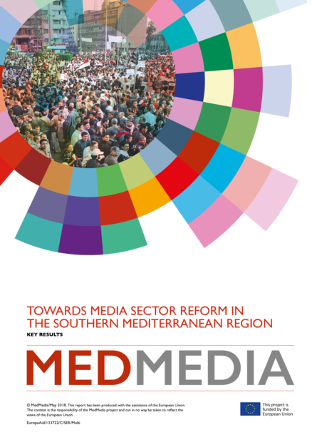 "Part of a €17 million EU-funded programme entitled “Media and Culture for Development in the Southern Mediterranean”, MedMedia was implemented in the Southern Mediterranean from January 2014 until May 2018. The MedMedia programme has given media policy makers, regulators, public service broadcasters, journalists’ unions, media schools and human rights campaigners in the Southern Mediterranean a unique opportunity to act as catalysts for media sector reform in their region. MedMedia supported local stakeholders’ efforts to push forward media reform processes, sparked by the Arab Spring with a view to creating a regulatory environment supportive of media freedom and public trust in mainstream media outlets. It has offered access to expertise and know-how from both sides of the Mediterranean and has facilitated a mutual learning process between media institutions from the Southern Mediterranean. MedMedia’s activities were divided into three complementary components: capacity development for media professionals and institutions based on a bottom-up approach; networking activities involving decision makers and media practitioners; an overview of the media sector for decision-makers and practitioners across the region." (Page 4)