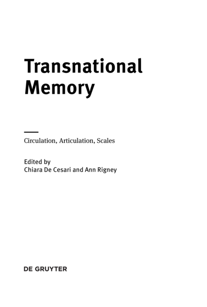 "How do memories circulate transnationally and to what effect? How to understand the enduring role of national memories and their simultaneous reconfiguration under globalization? Challenging the methodological nationalism that has until recently dominated the study of memory and heritage, this book charts the rich production of memory across and beyond national borders. Arguing for the fruitfulness of a transnational as distinct from a global approach, it places the issues of circulation, articulation and the scales of remembrance at the centre of its inquiry. In the process, it sheds new light on the ways in which mediation, post-coloniality, migration and regional integration affect both the way we remember and the role of memory in contemporary societies. In this interdisciplinary collection, humanities and social science scholars examine a rich sample of cases from the nineteenth century on, stretching across the globe from Vietnam to Europe and the Middle East, to the USA and the Pacific, and involving a wide range of cultural practices from quilting to films, from photography to heritage sites and monuments. In the process, the volume develops a new theoretical framework while proposing new methodological tools and resources for studying collective remembrance beyond the nation-state." (Publisher description)