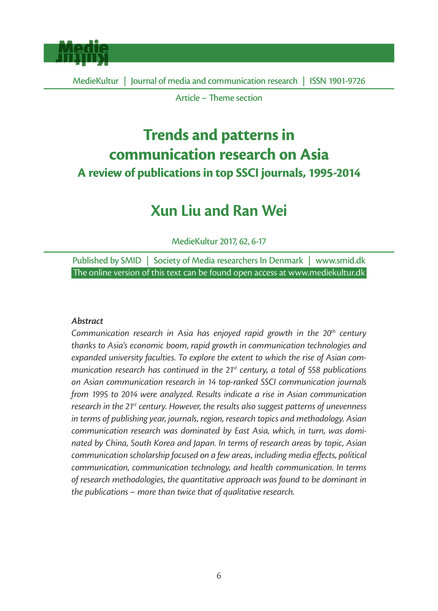 Trends and Patterns in Communication Research on Asia: A Review of Publications in Top SSCI Journals, 1995-2014