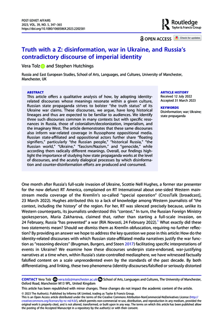 Truth with a Z: Disinformation, war in Ukraine, and Russia’s contradictory discourse of imperial identity