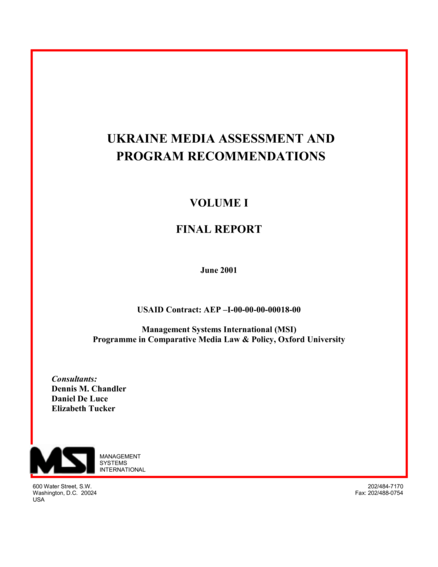 Ukraine Media Assessment and Program Recommendations