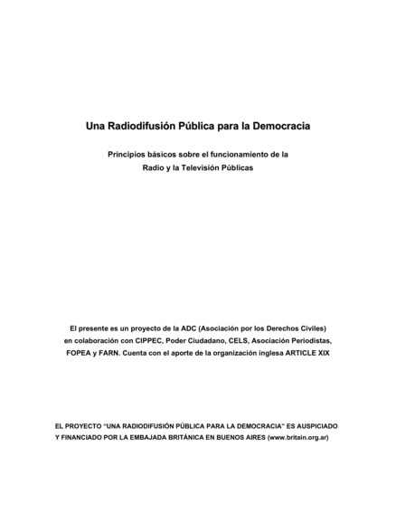 Una radiodifusión pública para la democracia: Principios básicos sobre funcionamiento de la radio y la televisión públicas