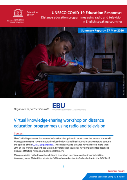 UNESCO COVID-19 Education Response: Virtual Knowledge-Sharing Workshop on Distance Education Programmes Using Radio and Television, 27 May 2020. Summary Report