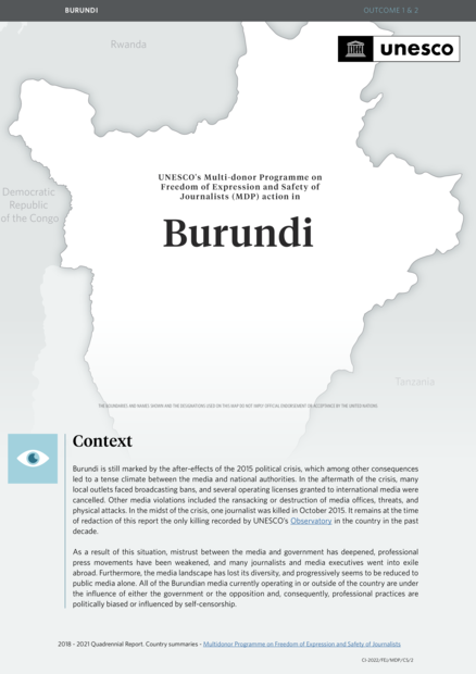 UNESCO's Multi-Donor Programme on Freedom of Expression and Safety of Journalists (MDP) Action in Burundi: 2018-2021 Quadrennial Report, Country Summaries