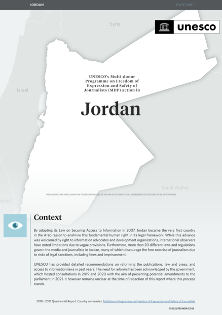 UNESCO's Multi-Donor Programme on Freedom of Expression and Safety of Journalists (MDP) Action in Jordan: 2018-2021 Quadrennial Report, Country Summaries