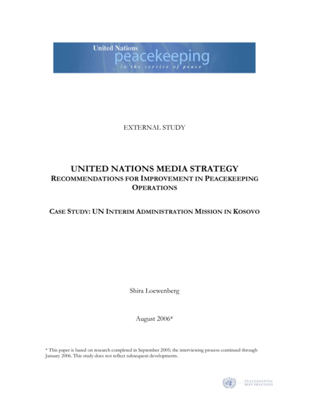 United Nations Media Strategy: Recommendations for Improvement in Peacekeeping Operations. Case Study: UN Interim Administration Mission in Kosovo