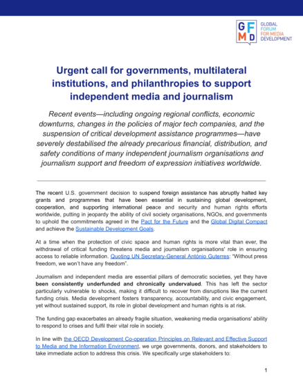 Brussels: Global Forum for Media Development (GFMD) (2025), 3 pp.