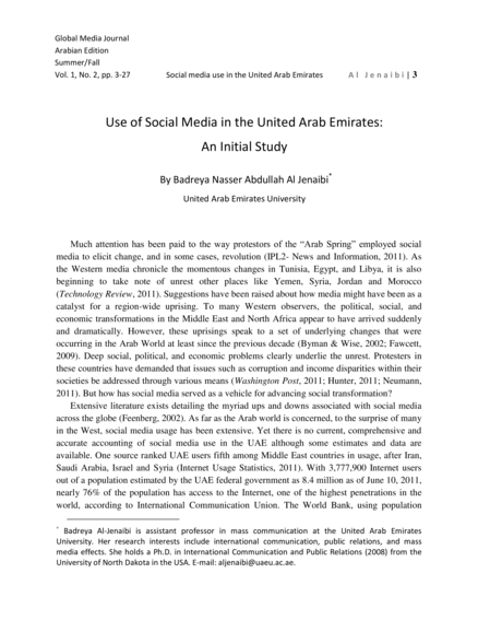Global Media Journal - Arabian Edition, volume 1, issue 2 (2011), pp. 3-27