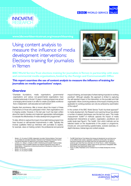 Using Content Analysis to Measure the Influence of Media Development Interventions: Elections Training for Journalists in Yemen