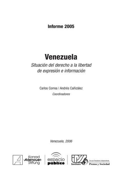 Caracas: Konrad-Adenauer-Stiftung (KAS); Espacio Público; Instituto Prensa y Sociedad (IPYS) (2006), 248 pp.