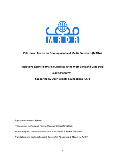 Palestinian Center for Development and Media Freedoms (MADA) (2015), 25 pp.
