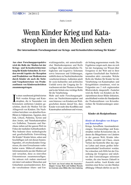 "Aus einer Forschungsperspektive wird die Rolle der Medien bei der Kriegs- und Krisenberichterstattung für Kinder beleuchtet. Es werden sowohl Aspekte der Rezeption und Produktion von Medientexten durch Kinder als auch die Sicht und Vorgehensweisen von ProduzentInnen von Kindernachrichten zusammengetragen." (Zusammenfassung)