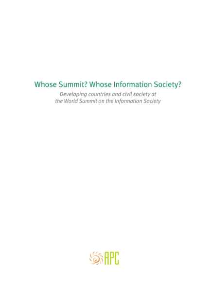 Whose Summit? Whose Information Society? Developing Countries and Civil Society at the World Summit on the Information Society