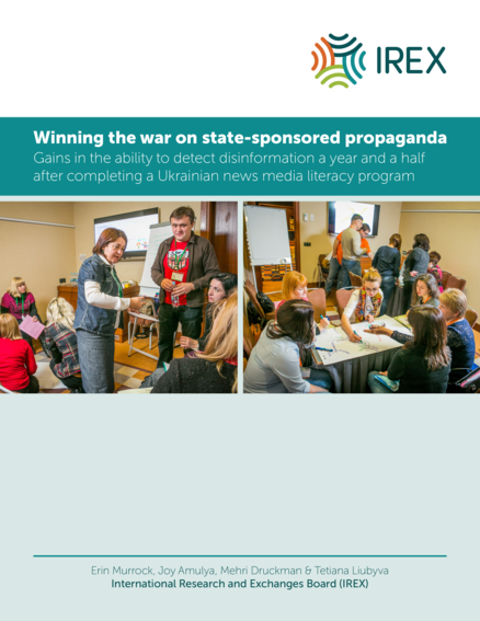 "While Ukrainians consume a high volume of news content, barely one in four Ukrainians trust the media and only 23% cross-check news sources—the most basic form of media literacy [...] In this context, IREX designed and implemented Learn to Discern (L2D), a “demand-side” response to the problem of manipulative information, an essential companion to “supply-side” solutions such as supporting independent, ethical, and truthful journalism. Citizens must be able to separate fact from fiction, recognize manipulation and hate speech, and demand and seek out independent, fact-based journalism. From October 2015 through March 2016, IREX implemented L2D with funding from the Canadian government and in partnerships with local organizations Academy of Ukrainian Press and StopFake. Through intensive skill-building seminars, L2D reached more than 15,000 people of all ages and professional backgrounds [...] The results of the impact evaluation showed that L2D participants had statistically significant higher levels of disinformation news analysis skills, greater knowledge of the news media environment, a stronger sense of agency over the media sources they consume, and were more likely to consult a wider range of news sources. Compared to the control group, L2D participants were: 28% more likely to demonstrate sophisticated knowledge of the news media industry; 25% more likely to self-report checking multiple news sources; 13% more likely to correctly identify and critically analyze a fake news story." (Executive summary, page 3-4)