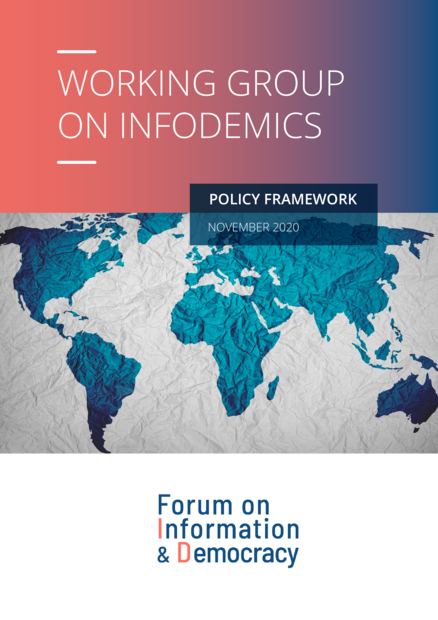 "The Forum on Information & Democracy proposes a number of policy steps to democratic governments and their supporters. Transparency and accountability need to be shored up and content moderation should be done according to democratic mandates and oversight. The impact of new platforms where disinformation can go viral, such as private messenger services, needs to be understood. Through a global democratic coalition, a meaningful alternative should be offered instead of the two dominant models of technology governance: the privatized and the authoritarian. Through the intergovernmental Partnership on Information & Democracy, democratic leaders recognize the information and communication space as a ‘public good’. Now they have to implement their commitments in policies on the national and international level. Our recommendations are designed to shape and support their policy agenda." (Foreword, page 13)