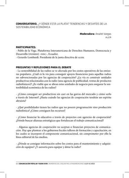 Quito: Asociación Latinoamericana de Educación Radiofónica (ALER); Abya-Yala (2013), pp. 68-72