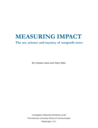 "This report seeks to answer the two-pronged question, “What is ‘impact,’ and how can it be measured consistently across nonprofit newsrooms?” A review of recent, relevant literature and our informal conversations with experts in the field reveal growing ambitions toward the goal of developi