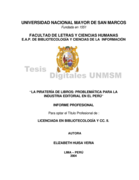 Lima: Informe Profesional EAP de Bibliotecología y Ciencias de la Información Facultad de Letras y Ciencias Humanas Universidad Nacional Mayor de San Marcos (2004), ix, 145 pp.