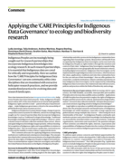 "Indigenous Peoples are increasingly being sought out for research partnerships that incorporate Indigenous Knowledges into ecology research. In such research partnerships, it is essential that Indigenous data are cared for ethically and responsibly. Here we outline how the ‘CARE Principles for In