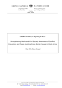 UNOWA Workshop on Reporting for Peace: Strengthening Media and Civil Society Awareness of Conflict Prevention and Peace-Building Cross-Border Issues in West Africa. 4th May 2005, Dakar, Senegal