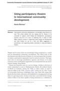 "International community development is increasingly using theatre as a tool. This article analyses this use, arguing that for theatre to be successful to support social change and development, participatory practice must be at its core. In exploring this, it looks at what affects theatre’s succes
