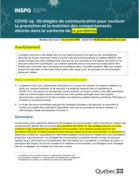 COVID-19: Stratégies de communication pour soutenir la promotion et le maintien des comportements désirés dans le contexte de la pandémie
