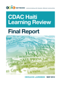 "In the immediate aftermath of the January 2010 earthquake in Haiti, the CDAC (Communicating with Disaster Affected Communities) Network undertook its first ever ground initiative. This initiative, which came to be known as CDAC Haiti, was funded largely through the OCHA’s ERRF with some additiona