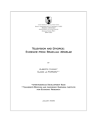 "This paper studies the link between television and divorce in Brazil by exploiting variation in the timing of availability of the signal of Rede Globo—the network that had a virtual monopoly on telenovelas in the country—across municipal areas. Using three rounds of Census data (1970, 1980 and