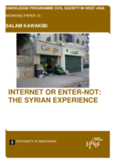 "This working paper discusses the status of the internet in Syria. Syrian authorities show a large amount of distrust vis-Ã -vis the new technology and there is much state control. The list of banned sites is long, varied and flexible. Website bans are about muzzling free expression and controlling