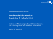 MedienVielfaltsMonitor: Ergebnisse 2. Halbjahr 2014. Anteile der Medienangebote und Medienkonzerne am Meinungsmarkt der Medien in Deutschland