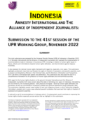 "This joint submission was prepared for the Universal Periodic Review (UPR) of Indonesia in November 2022. In it, Amnesty International and the Alliance of Independent Journalists (AJI) evaluate the implementation of recommendations made to Indonesia in its previous UPR, including in relation to hum