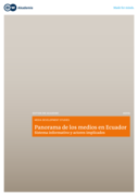 "En Ecuador escasean tanto los análisis de los medios de comunicación privados, públicos o comunitarios, como del consumo mediático o de la formación periodística. Los pocos datos disponibles han impedido que se puedan realizar estudios complejos y exhaustivos. El presente informe se centra en
