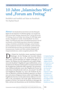 "Die Islamkonferenz hat kritisch nach dem Beitrag der Medien für die Integration von Muslimen gefragt. 2007 machten der SWR mit der Radio-Sendung „Islamisches Wort“ und das ZDF mit der TV-Sendung „Forum am Freitag“ einen Anfang. Der NDR folgte später mit dem „Freitagsforum“ und der „