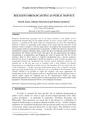 "Religious broadcasting represents one of the basic elements of the public service broadcasting (broadcasting for the public benefit). It serves various public needs and purposes - according to the ritual model of communication it serves the intermediary function (it allows to participate in the lit