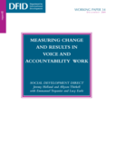 "This Working Paper from DFID’s Evaluation Department offers a menu of Voice & Accountability (V&A) indicators, and suggests steps for building monitoring and evaluation frameworks for V&A interventions. It provides a check list of management issues, and some ideas for data collection. It does not