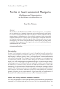 "The introduction of a liberal media model built on freedom of expression, non-regulation, and free market in Post-Communist Mongolia has lead to a plethora of new media outlets. In a context of external pluralism, the media are key players in dramatic political, social, and cultural changes in Mong
