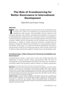 "This paper, originally produced in longer format for the World Bank Group, is meant to be a primer on crowdsourcing as an informational resource for development, crisis response, and post-conflict recovery. Inherent in the theoretical approach is that broader, unencumbered participation in governan